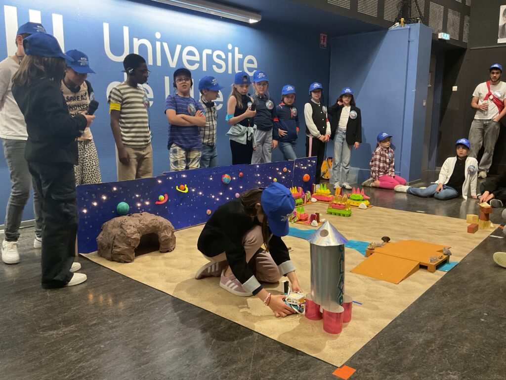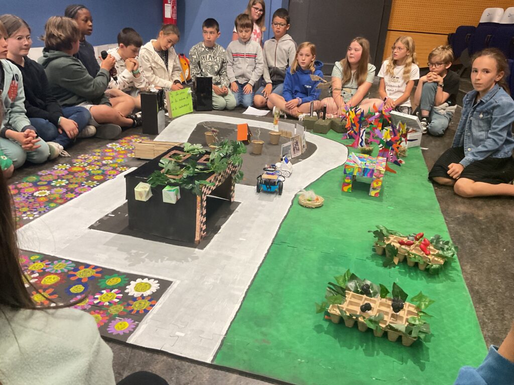 Les élèves ont présenté leur projet, aboutissement d’une année scolaire au cours de laquelle ils ont appris à programmer le déplacement d’un robot, écrit et interprété un récit accompagnant son parcours, conçu et fabriqué une maquette, préparé une présentation orale et tenu un carnet de bord retraçant leur cheminement.