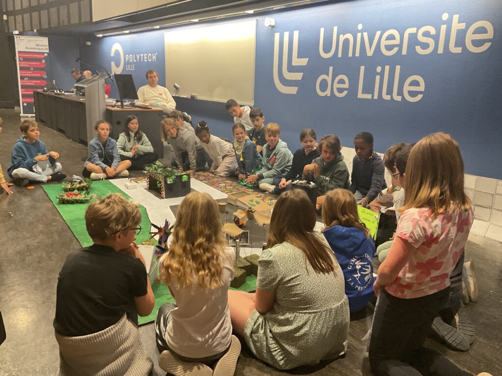 Le 15 mai 2025, Polytech Lille a accueilli 300 élèves issus de 12 classes de CM1 et CM2 venues de tout le département du Nord, pour la onzième édition de la CREP, placée sous le signe du thème « Demain ? ».