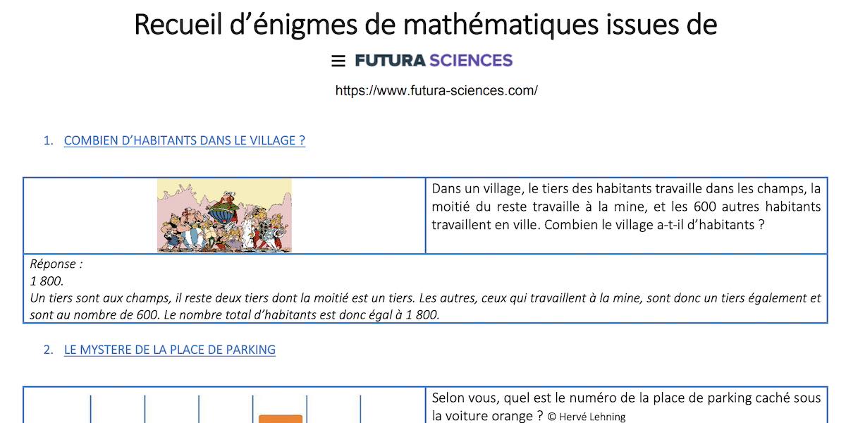 Des énigmes issues de Futura Sciences