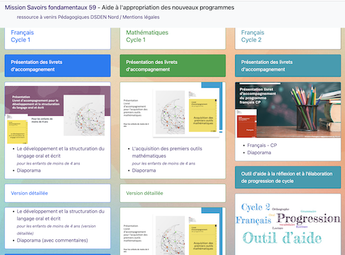 Vous trouverez ci-dessous l’ensemble des livrets d’accompagnement des programmes, ainsi que différents outils conçus par les missions départementales facilitant leur appropriation (présentations, aides à l’élaboration de progressions de cycle, etc.).