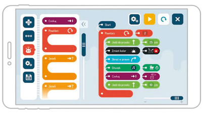 défi 4 : Photon se déplace en formant un carré de 20 cm, 3 fois de suite (imposer l’utilisation de la fonction « repeat »)